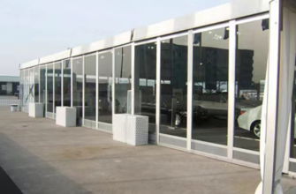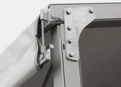 Roof: Heavy duty white 850g/sqm PVC fabric, block-out, 100% waterproof, fireproof (DIN4012 B1, M2), UV resistant.